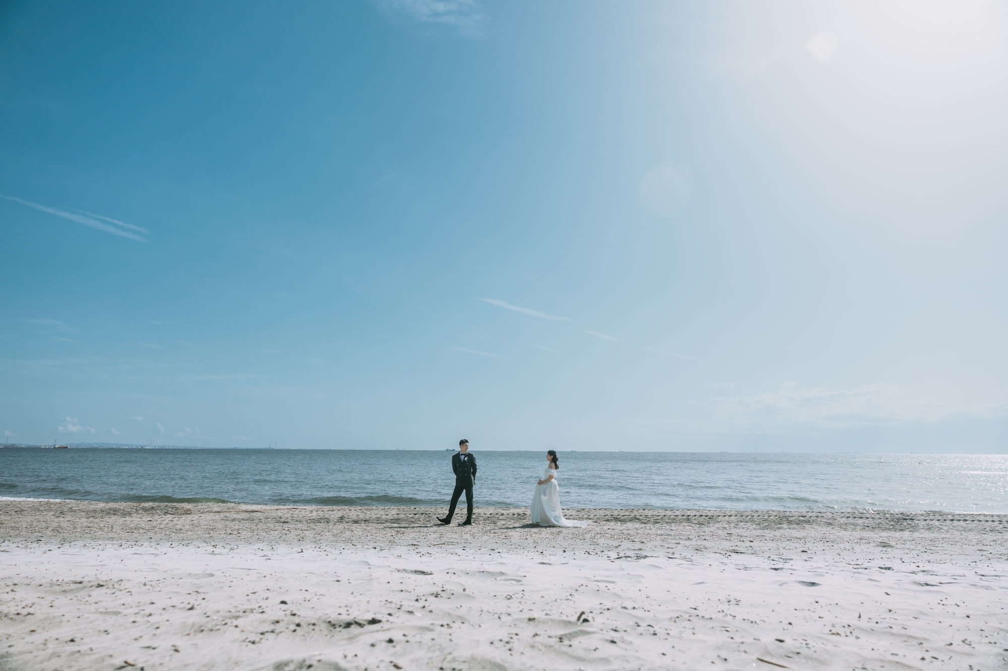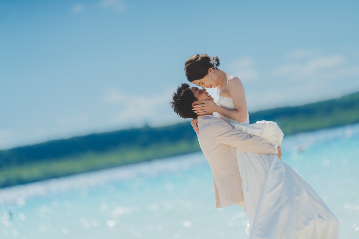 海と空の青に白いドレスがよく映える、大人気の撮影スポット。広々と開放的な空間が、より自然な笑顔を引き出してくれます。